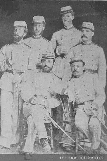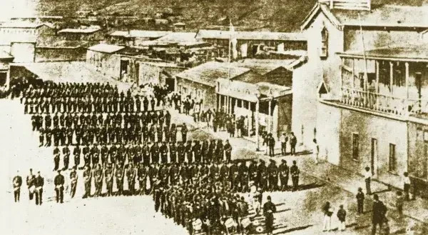 Batallón Nº 3 de Línea del Ejército de Chile, formados en columnas en la Plaza Colón de Antofagasta, Bolivia en 1879.