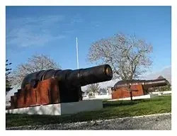 bateria; 2 cañones rayados Armstrong de avancarga de 150 lbs (203 mm),
